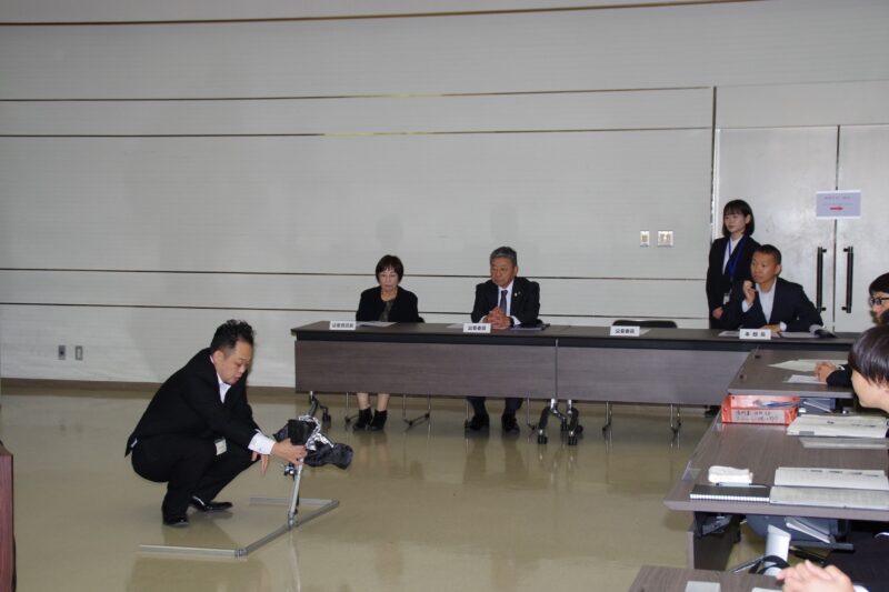 岡田委員長、稲井委員、三谷委員が、今後の警察業務における先端技術活用の参考とするために開催された展示会を視察し、メーカー担当者から活用例等について説明を受けました。