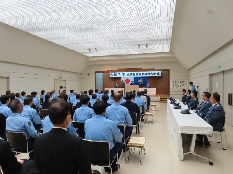 岡田委員長が、永年在職警察職員表彰式に出席し、「これからも県警察の中核として、県民の安全と安心のため、より一層職務に精励してほしい」等と祝辞を述べました。